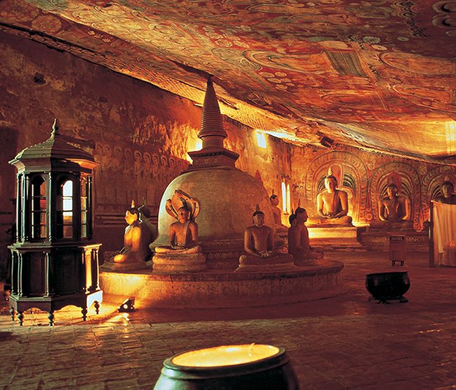 After breakfast you will leave Kandy and will proceed to the north. Along the road you will see paddy fields, coconut groves, rubber and spice gardens and plantations. You will stop at one of the spice gardens and there you can see a lot of spice plants, bushes and plants cropping spices. After this visit you will ascend for a visit the Dambulla cave temple. This temple complex consists of five separate caverns with numerous statues of the Buddha and Hindu deities. In afternoon do a jeep safari at Minneriya national park. This park is consists of a mix of ever green forest and scrub areas. The central feature of the park being the Minnariya tank, which you can still observe the large number of elephant who come to bath and graze on nearby grass, as well as many more animals and vast flocks of birds. Overnight stay in Sigiriya.